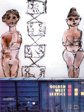 "Golden West Service" by Guy R. Beining, collage, 4x5.5 inches